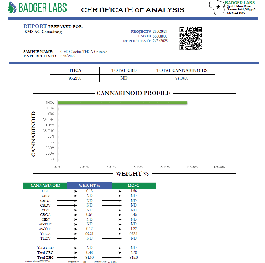 As a balanced hybrid, Garlic Cookies THCA Crumble offers the best of both worlds. It provides the powerful relaxation associated with Indica strains while also delivering the uplifting, cerebral effects typical of Sativas. The balanced genetics make it versatile, allowing it to be enjoyed during the day or at night, depending on your needs. The high THCA content means that when heated, this concentrate releases its full potency, delivering fast-acting, long-lasting effects.