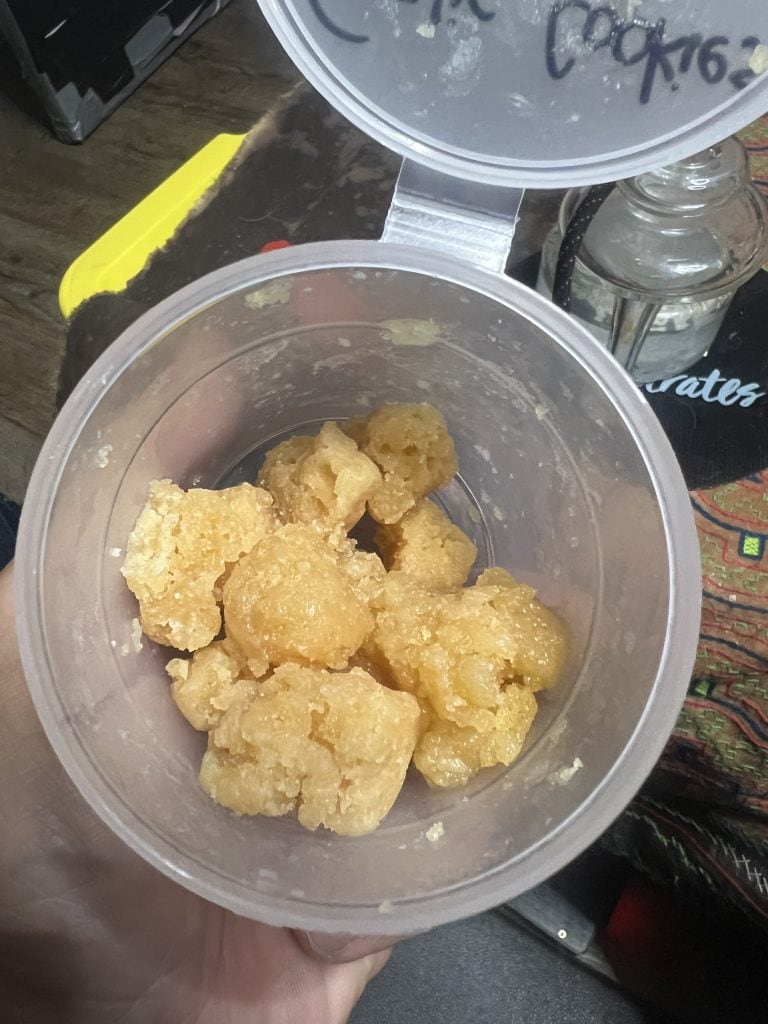 For the price I’m blown away. Tastes like GMO with a little dough. It’s decently smooth and hits really nice. Don’t get me wrong this is inexpensive dabs but for $3 a gram it’s well worth it in terms of flavor and effects. Smells like GMO and cookies out of the bucket -very pleasant. Does have very nice medicating effects.