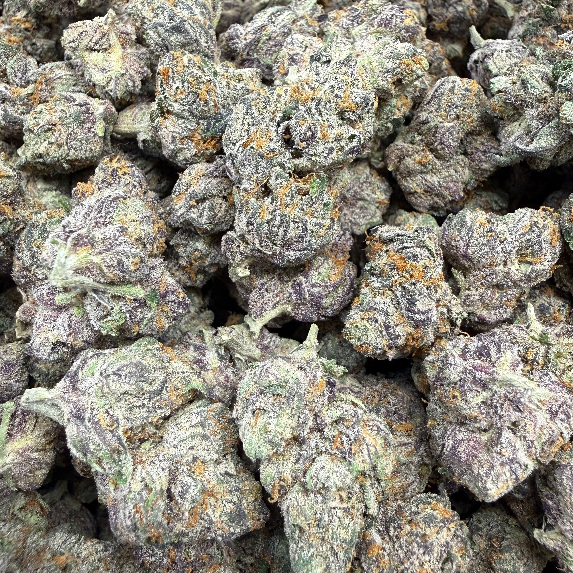 Our Gary Runtz is grown in a sealed indoor environment with precise control over every detail. We use only high-end inputs and a perfected grow process. This is Exotic THCA flower bulk buyers will appreciate. You won’t find any outdoor shortcuts here—just rich, sticky buds that look and smell incredible. Each nug is dense and trimmed to perfection. Colors range from bright greens to deep purples, with thick orange hairs throughout. A thick frost of trichomes coats every surface, proof of the care and genetics behind this strain.