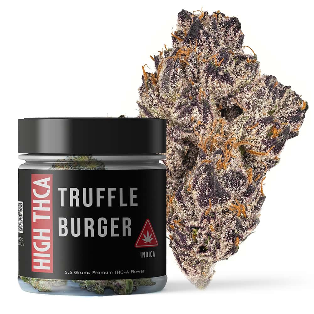 Truffle Burger THCA flower ounces are a powerful indica strain that blend the genetics of Trufflez and Donny Burger. Known for its robust flavor and potent effects, Truffle Burger is a favorite among indica enthusiasts. At High THCA Hemp Flower, we ensure our Truffle Burger is lab-tested for the highest quality and legality.